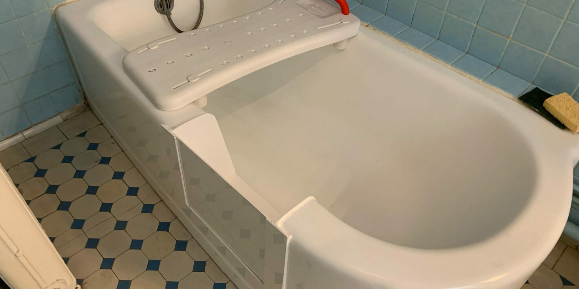 L’objectif de cette intervention, à la fois économique et efficace, était d’adapter la baignoire existante pour une personne à mobilité réduite. Nous avons avant tout assurer la protection de la salle de bain, puis réalisé la découpe latérale de la baignoire en tout sécurité, afin d’installer la porte étanche.